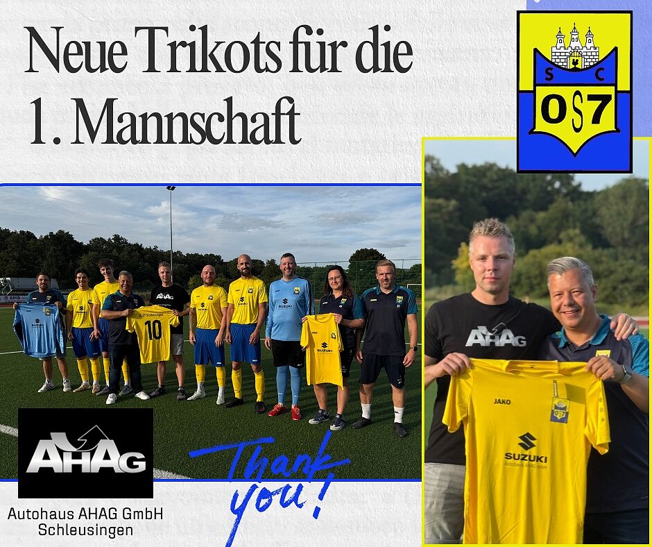 Das Autohaus AHAG ist stolz, einer der Sponsoren Heimatvereins SC 07 Schleusingen zu sein und wünscht dem Team Alles Gute sowie eine erfolgreiche Saison 2025 / 2026 in der Kreisklasse, verbunden mit dem sofortigen Wiederaufstieg:-)